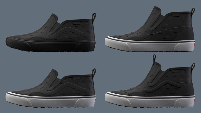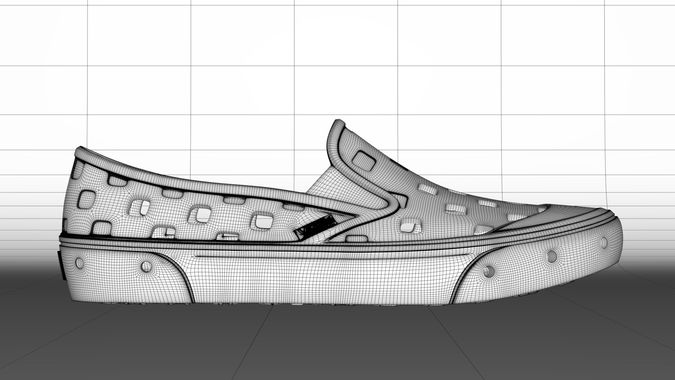 The TRK is a one piece, injection molded style. No laces, no panels. The original file was created for mold making by the factory. I then re-built the model with clean topology and UV's to make sure we could customize it when/where necessary.